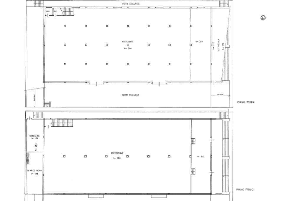 Piano primo: grande area espositiva open space con altezza interna di 3 mt, particolarmente adatta per showroom, esposizione o attività aperte al pubblico.
