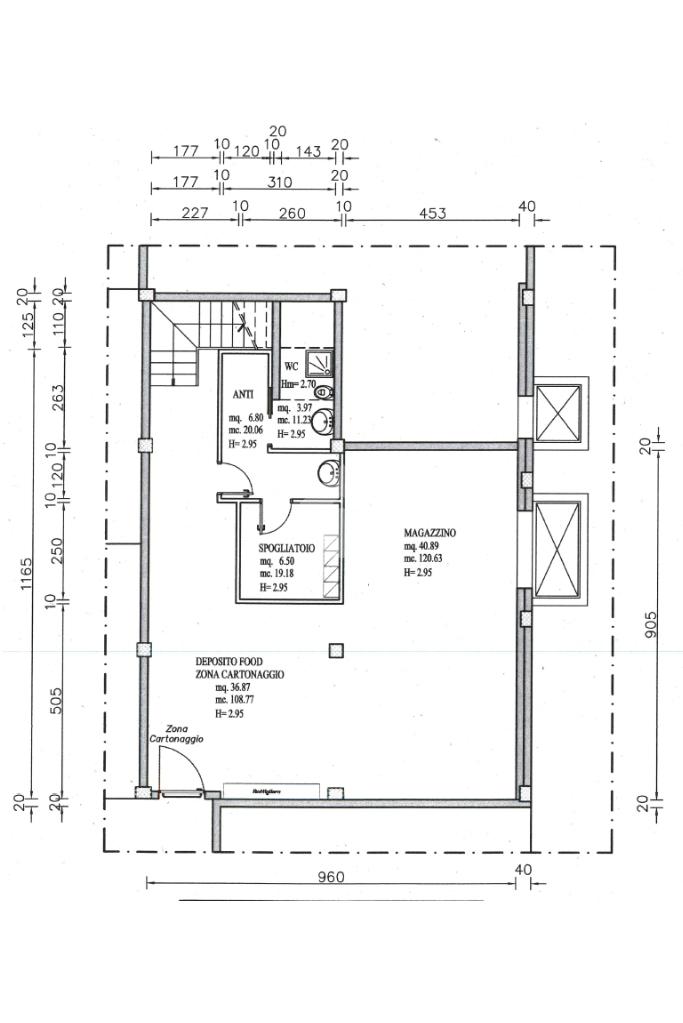 - Superficie: la superficie è composta da 2 locali e 2 servizi igienici e magazzino.